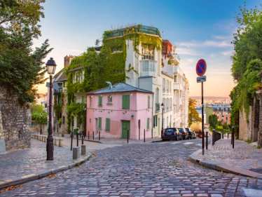 When you exit the Metro, walk west along Avenue Rochechouart and turn onto Rue de Clignancourt, then take the third street on the left, Rue André del Sarte. Don’t be put off if the street looks a bit seedy, the whole area is being regenerated and trendy upmarket restaurants are moving in. At the end of the street take the flight of stairs on the right which will bring you up to a very pretty square with a choice of restaurants and terraces for lunch.